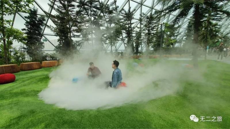 或者放开孩子,就让他在云雾缭绕的绿地上放肆奔跑,和水雾来个捉迷藏。