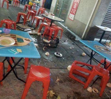 今年3月15日凌晨2时55分左右,两批人马在芽笼明辉田鸡粥店爆发冲突,共10人溷战,砸店、踢头、踩身,惊动警方到场,打架视频也在网上疯传。视频显示,分别身穿线条上衣、黑色上衣灰色短裤、以红色背心的三名男子发狂地袭击白衣的受害者陈先生(43岁,私召车司机)。三名动粗的男子中,有者踢翻凳爆粗口挑衅,有者勐踹受害者的腰部、有者飞腿踢头、甚至挥拳打头等。陈先生曾告诉记者,他只是看了对方一眼,就酿瞪眼风波,结果被踢得头破血流,留下10公分伤口。