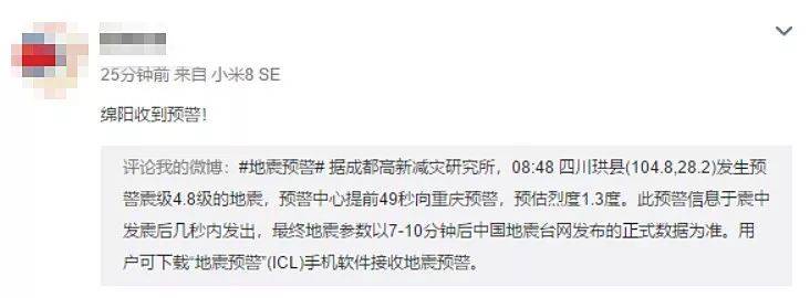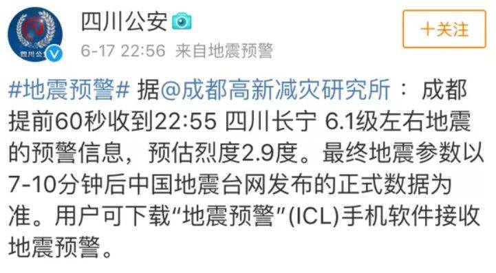 图源:四川公安微博,“地震预警不是预报,地震预警系统是一个全自动的物联网,可实现全自动的秒级响应。