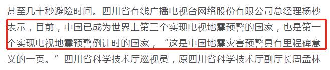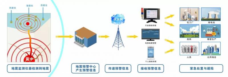 地震预警是在地震发生后,利用电波比地震波快的原理,用电波向震中周边警报,以实现在震波抵达前,提前几秒到几十秒预警的技术。”