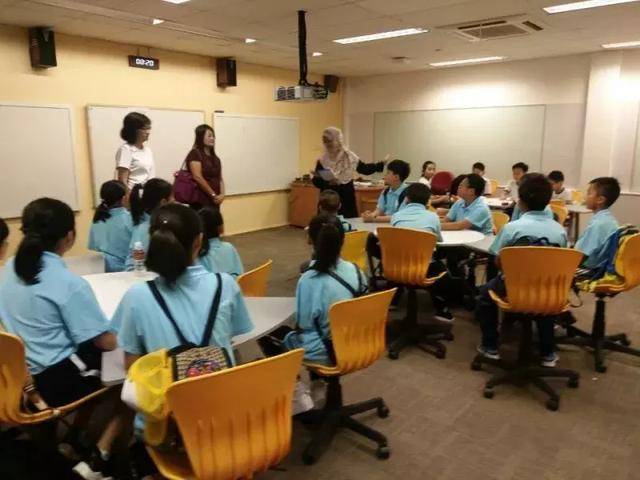 首先,我们乘大巴前往了新加坡工商小学,同学们在教室认真听老师讲解今天的交流学习流程,随后与工商小学的学生们结了一对一的交流小组。新加坡小朋友们热情地向大家介绍了学校与课程的概况,带领同学们到所在班级试听相关课程。双方还交换了为对方准备的精美礼物,同学们在交流中对新加坡教育有了一定地了解,并表示在工商小学的交流学习中收获匪浅,喜悦之情溢于言表。