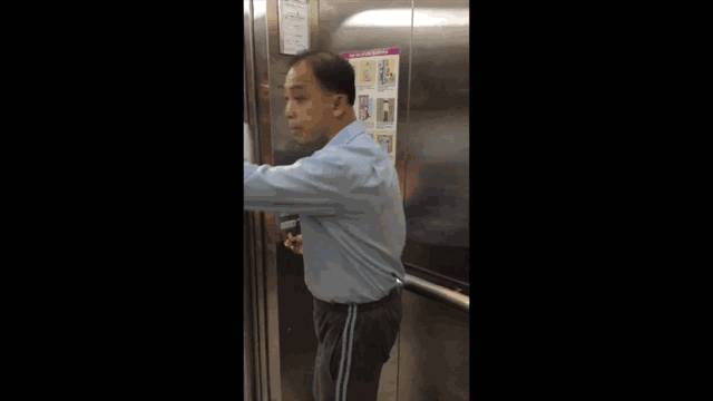 “我就是不喜欢和你这种肮脏的人乘电梯!”听到拍摄者反驳,中年男子情绪更激动了,反复用腿指著电梯门的方向,同时还挥舞手中塑料袋,要赶拍摄者走。