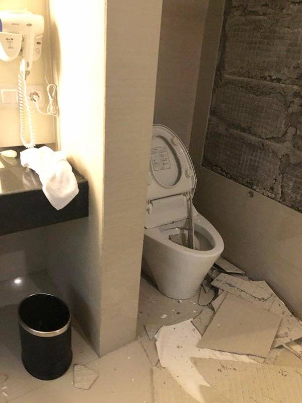 他也在帖文中分享几张照片,显示酒店和他的房间在地震后受损的情况。