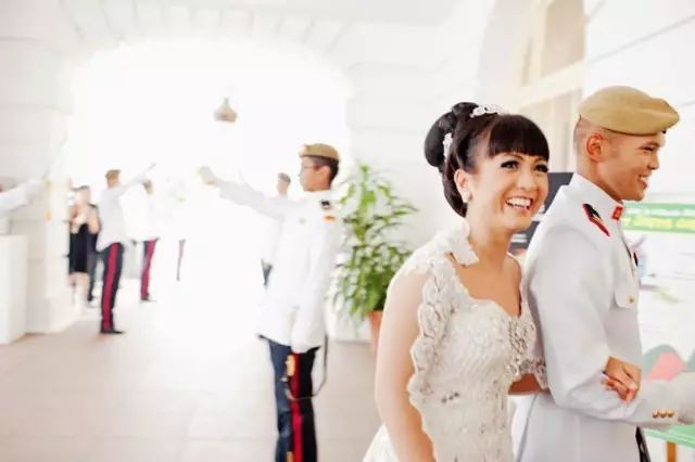 哎呀,听起来似乎好麻烦,但是考虑到这可能会是自己唯一一场婚礼了,具有非同一般的意义,因此还是有相当一部分新加坡军官新人会选择举行军事风格婚礼。
