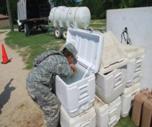 手臂浸水式降温措施是一种预防措施,受训军人在休息期间可将手臂侵入冰水中15至30秒,有效地降低体温。