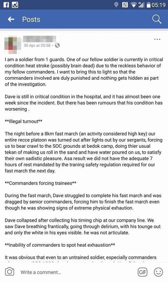 大家是否还记得,4月30日,一名年仅19岁的全职国民服役Lee Han Xuan Dave在军训时因中暑不幸身亡的事件?