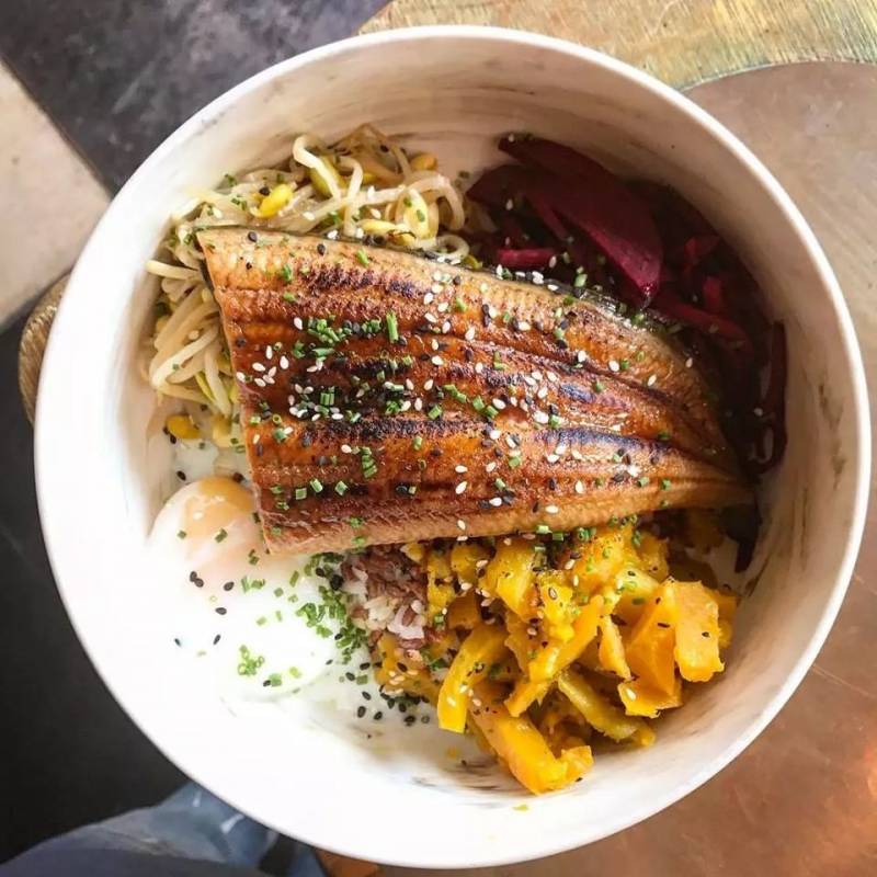 君君强烈推荐Genki,是鳗鱼bowl,与绿豆芽,烤南瓜,自制甜菜,温泉蛋搭配,味道朴实却令人深刻,鳗鱼和teriyaki的酱完美搭配。