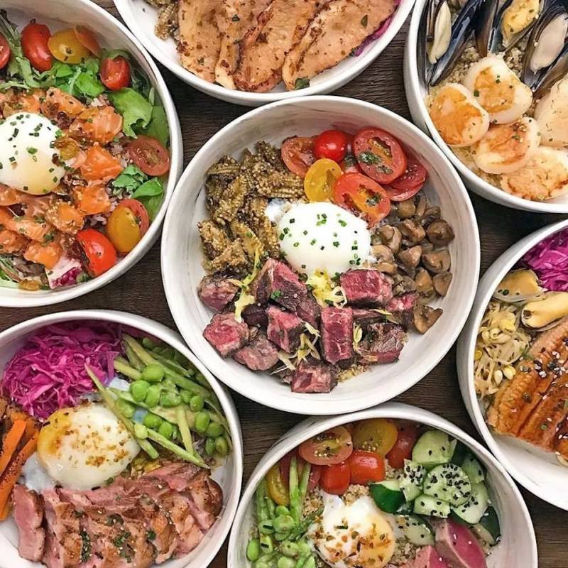 基底有白饭,糙米饭或者蔬菜沙拉。