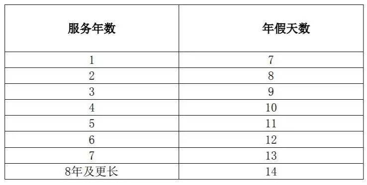 答案:根据“雇佣法令”,您最低可获得的带薪年假如下表所列: