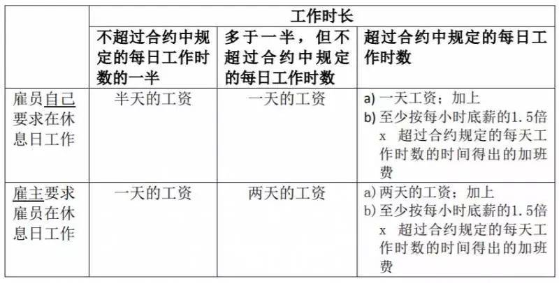根据“雇佣法令”,雇主需支付给雇员的薪金取决于工作时长以及工作请求是由雇主还是雇员提出。