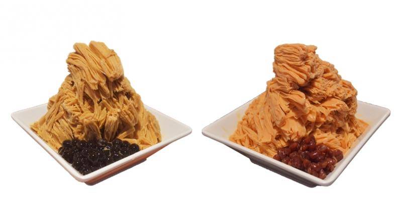 咖啡冰搭配黑糖果冻,奶茶冰则配搭红豆。