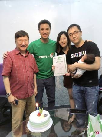 对于杨先生的帮助,杨时兴和妻子表示感激。为庆祝宝宝杨宇杰满月,Grab昨天也安排一起庆祝会。