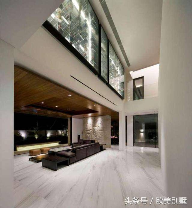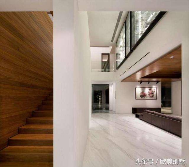 住宅的底层是厨房、书房、起居和就餐空间、按摩浴池、家庭图书馆和工作区。最高层都有私人宿舍, 包括主卧室和娱乐室。温暖的木色调已被慷慨地使用在整个家庭, 即使中性内饰和毛绒装饰保持设计风格的现代。