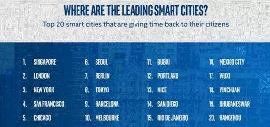 全球智慧城市Top 1今年一项由英特尔赞助的Juniper Research调查,在出行、医疗、公共安全和生产力四个方面对全球 20 大智慧城市进行了排名。