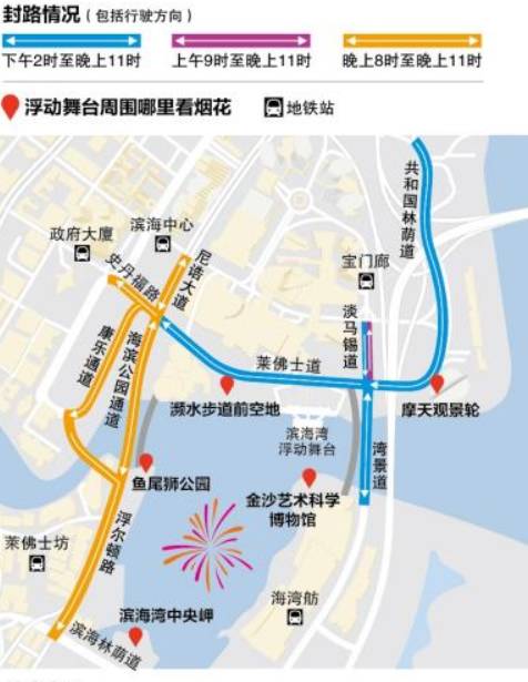 由于浮动舞台周围多处封路, 要到那里的公众出发前应留意路况