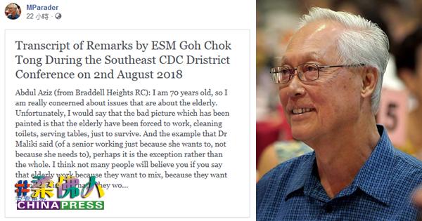 吴作栋面子书也附上网上流传他和居民对话的文字记录长文。