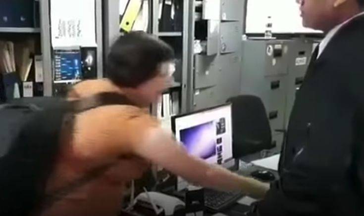 敬业的移民小哥后来无奈地转向同事,让他登记好状况,女子随后被关押。