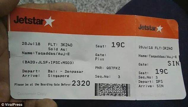 原来,这位42岁的英国女子正要从巴厘岛前往新加坡,可是在过安检的时候,她被移民官员拉到了一边,原因是她到印尼的签证早在2月18日的时候已经到期了。