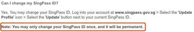 需要注意的是,你有且仅有一次更换的机会,也就是说,你更换的新的Singpass ID将会是永久性的。