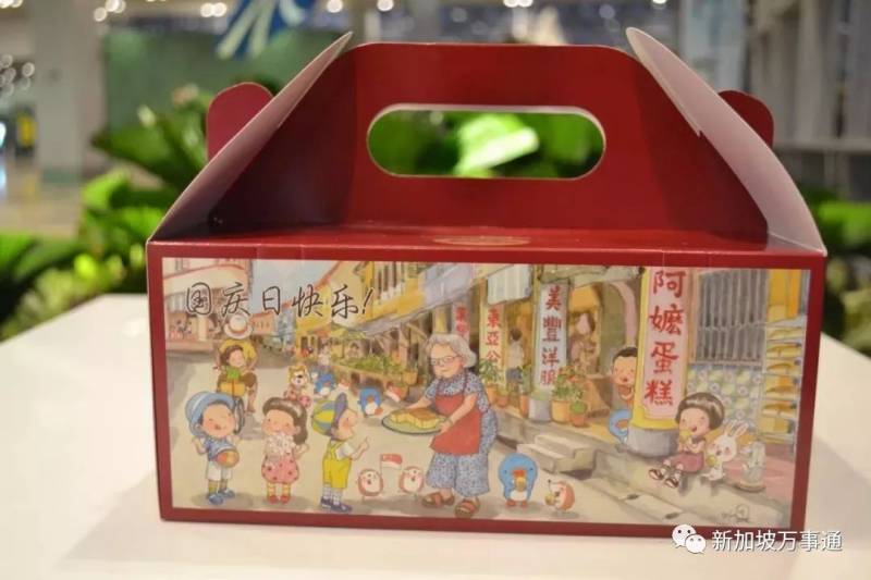 为了庆祝国庆,阿嬷同时请本地画家Lee Kow Fong设计了国庆特别包装盒,小坡的街头历史跃然纸上。