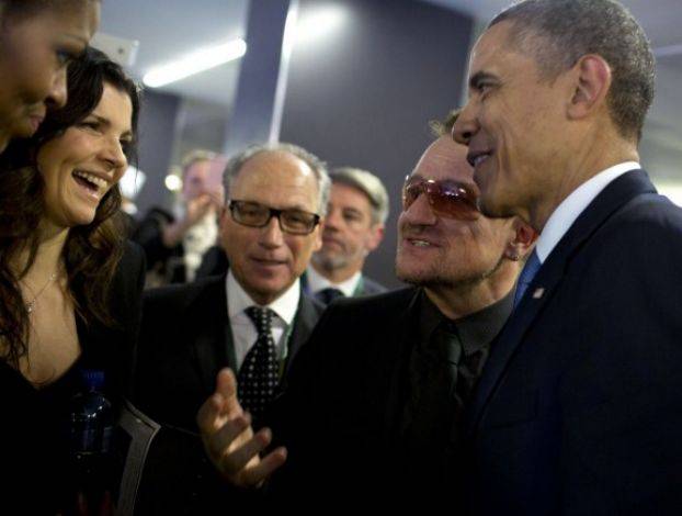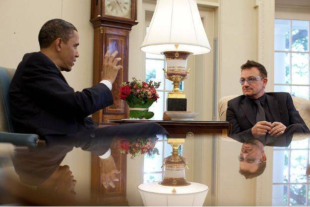 Bono 2010年做客白宫和美国前总统奥巴马会晤