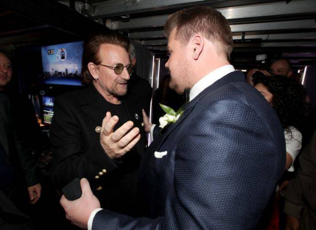 Bono与英国著名喜剧演员 詹姆斯·柯登 见面