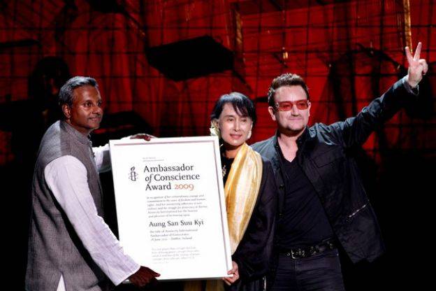 Bono公开支持缅甸领袖翁山淑枝