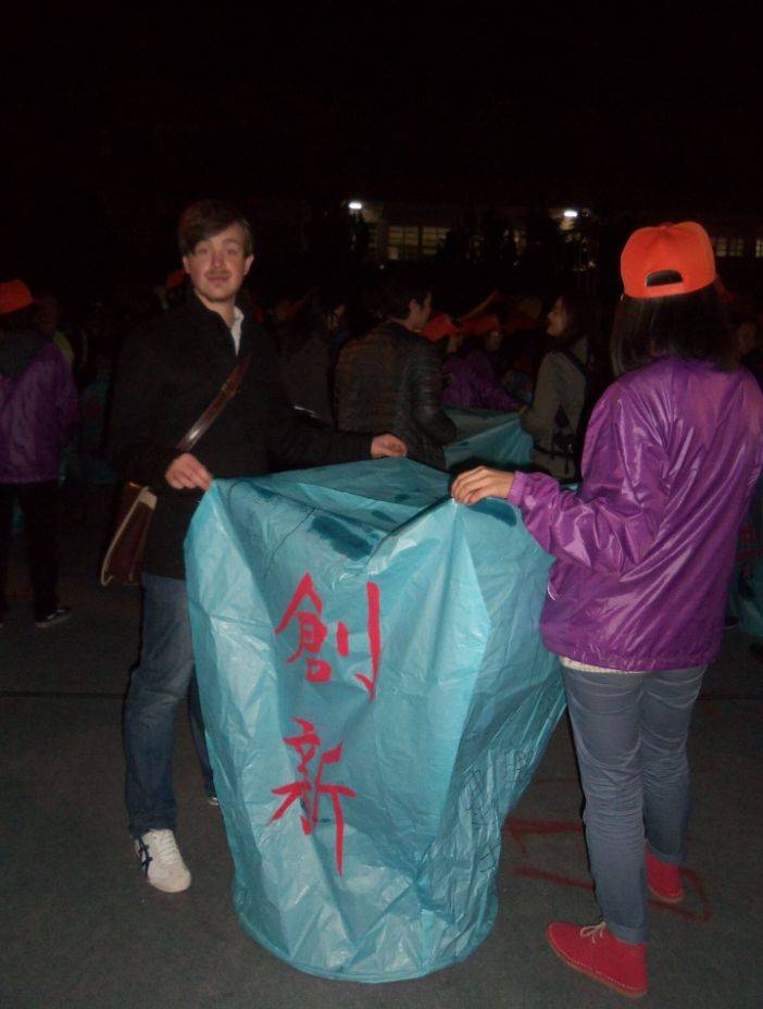 他感受过平溪的夜晚,和大家一起在郊外点上“创新”的孔明灯。