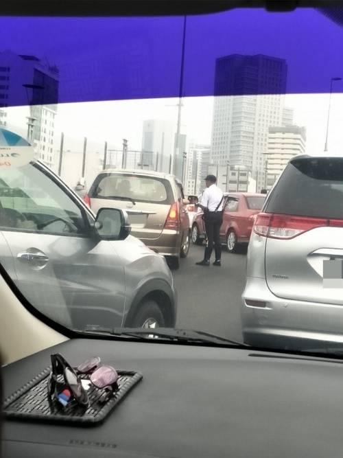 周四上午约8时30分,柔佛长堤往新山方向出现塞车现像。图取自面子书