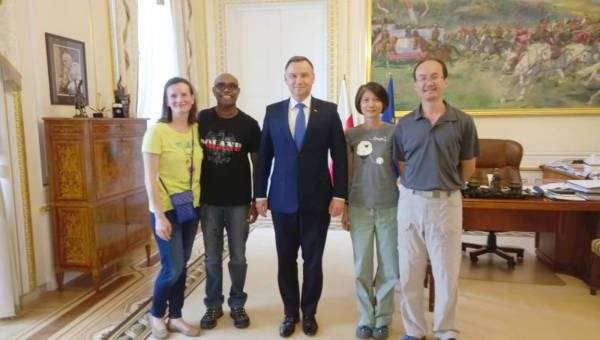 杜达日前在YouTube发布一支“哈喽,总统先生”的影片,记录整个过程,当天幕僚在波兰首都华沙街上,随机挑选4位外国旅客至总统府作客,他们分别是一对来自台湾南投的夫妻和新加坡情侣。