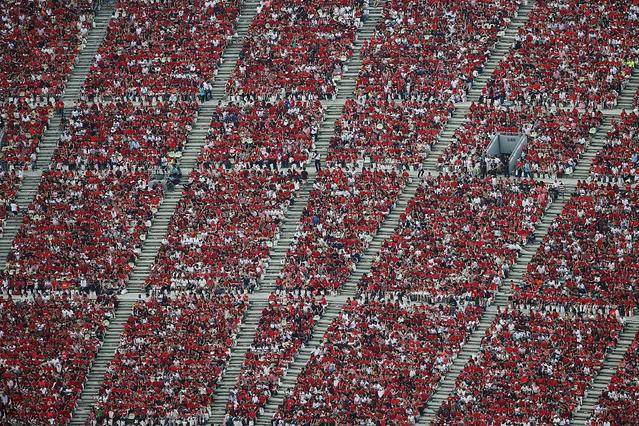 昨天的滨海湾浮动舞台是红与白的海洋,