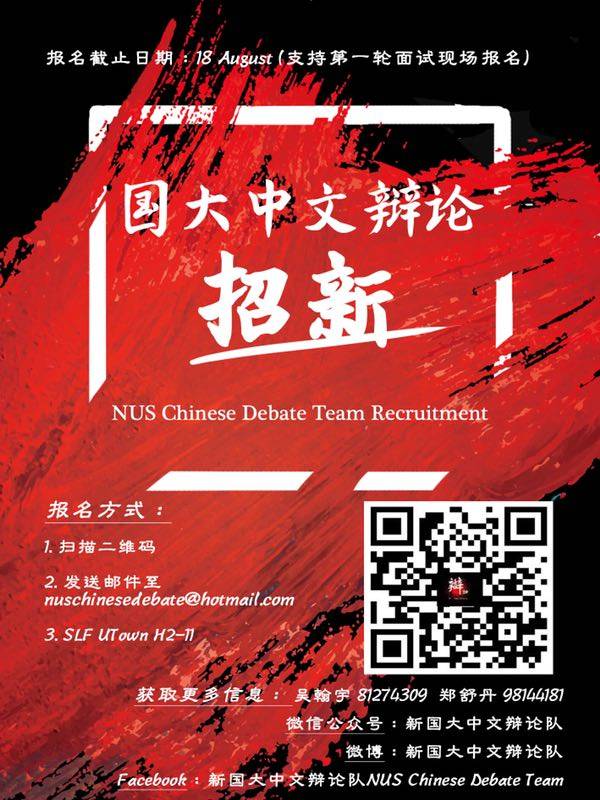 新国大中文辩论队自2001年成立以来,代表新加坡国立大学南征北讨,迄今为止已斩获13个国际赛事冠军,11次国际赛事全系列最佳辩手。这是一只冠军队伍中的队伍,在所有重大赛事的冠军名册里,都有新加坡国立大学的名字。也是迄今为止,唯一的大满贯队伍。辩论队在15、18年两度获得新加坡国立大学SAA(学生成就奖)比赛类别金奖。辩论队致力于新加坡地区华语辩论的推广、提升每一位队员的辩论水平并注重和各国各地各高校的交流。我们的足迹遍布港澳和中国大陆,也让我们和各高校辩论队建立了深厚的友谊。