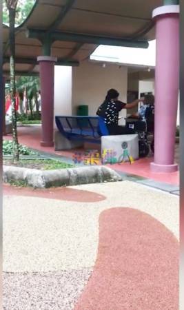 视频中可见,一名女佣背对视频,带着坐轮椅的阿嬷在组屋楼下纳凉。阿嬷坐轮椅喊叫呻吟,身体看来不舒服,但女佣却大力推打阿嬷的头,似乎要让她安静。