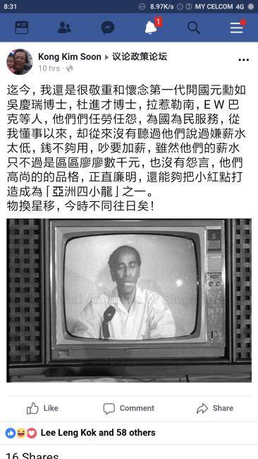 “所以你想要从哪里找部长?从那些每年只赚50万,那些能力(只值)一年50万的人里面(找吗)?所以(当)我找部长人选时,那些想领50几万薪水的,我不会要他。你最后只能找到非常非常平庸的人,那些在外面连100万都赚不到的人来当我们的部长。想想看,这对你来说好吗?还是最终对我们来说是更糟的?”