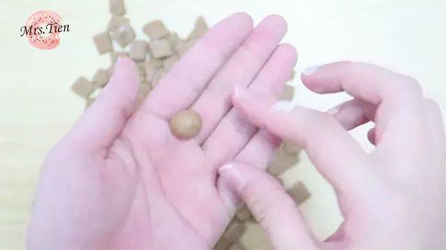 把切好的小方块揉成珍珠!以免珍珠黏在一起,就在珍珠上抹上一些番薯粉。