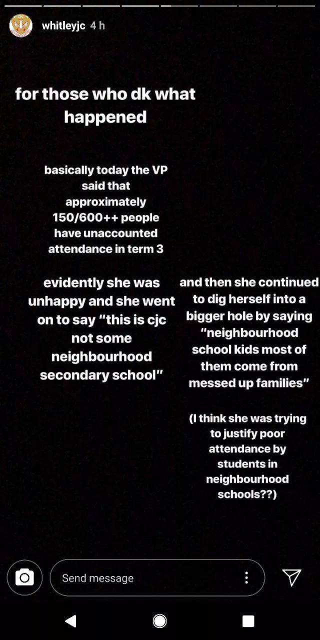 另一名疑似该校的学生也在个人Instagram上发图,诉说了同样的事情:
