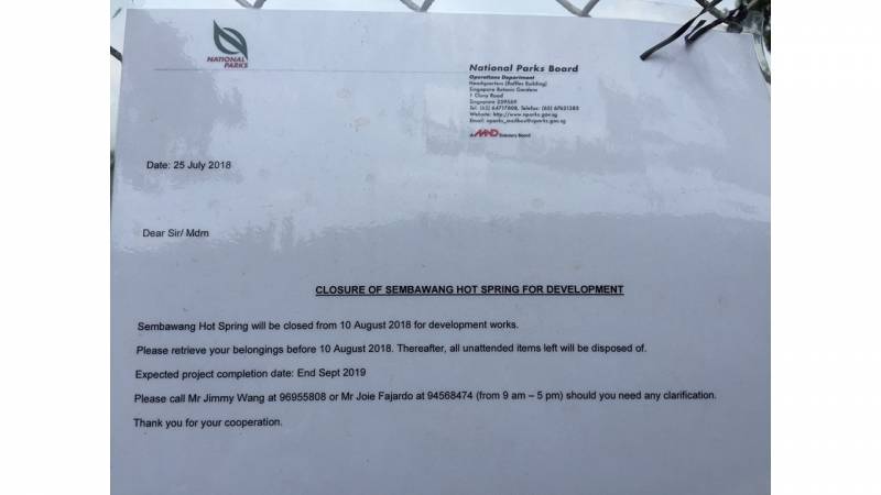 有公众日前在Facebook上载了几张三巴旺温泉区的照片。照片中,温泉区已被围起来,围板上还贴了一张国家公园局的文告,称三巴旺温泉已从星期五(8月10日)起关闭,以展开翻新工程。