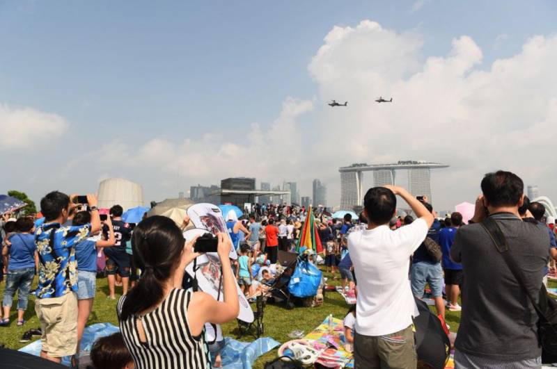今天早晨,滨海堤坝被新加坡人民攻陷了,上空还出现传说中的新加坡空军部队……场面很是壮观。