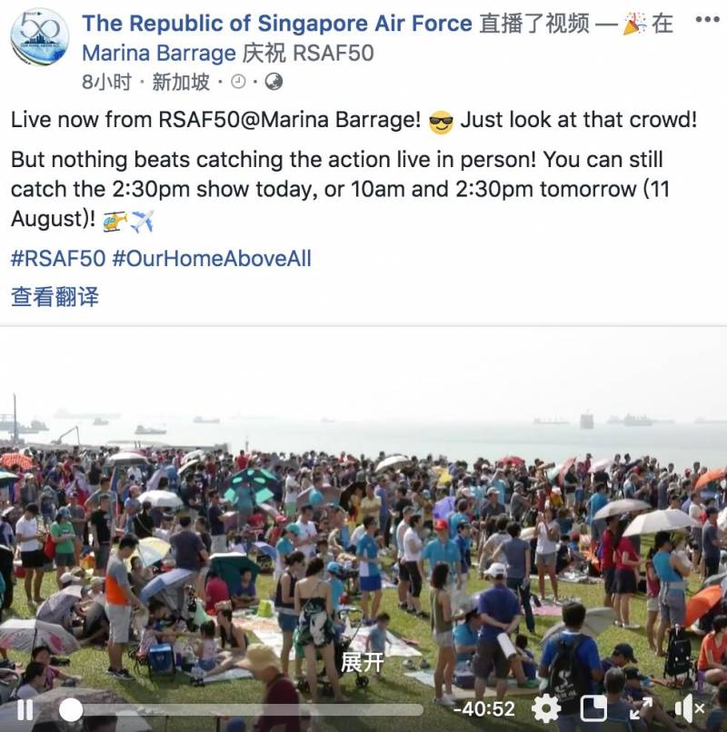 即使没有在现场感受到壮观的景象,新加坡空军部队的官方脸书也有进行直播,让你足不出户可以感受到今天的现场氛围。