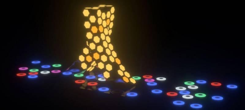 这是一个类似蜂巢式的装置,当游客与之互动时,会用话语点亮。