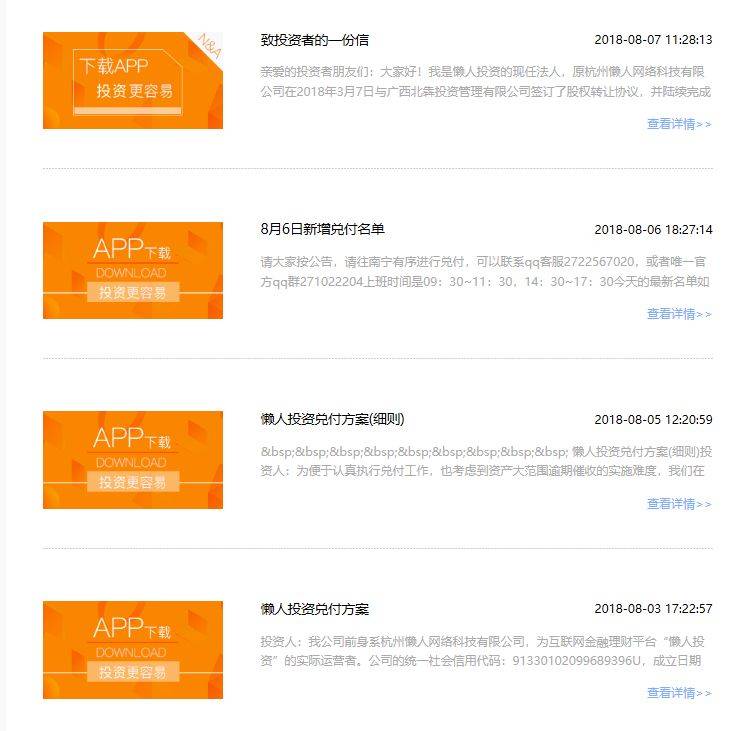 之后,8月1日,懒人投资平台发布一则客户见面会公告,定在8月3日在南宁与大家见面。