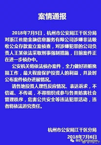 据统计,7月上半月,至少有50家平台出问题,涉及待还本金至少在350-400亿元人民币以上!7月5日,杭州市公安局江干分局对佐助金服涉嫌非法吸取公众存款案立案侦查。公司创始人兼CEO王旭航被采取强制措施。
