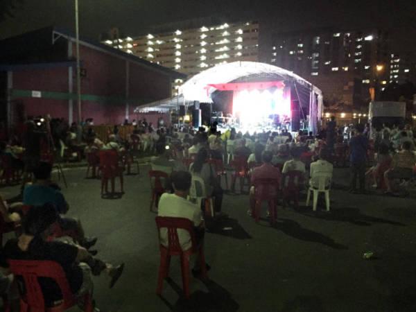 广告昨晚在芽笼峇鲁工业区的千禧舞台秀-莲花宫之夜歌台,由歌台千变王子皓皓与双语天后李佩芬主持,这已经是两人第二年在那里联手合作,是农历七月初一的重头戏歌台之一,吸引上千人到场观赏。