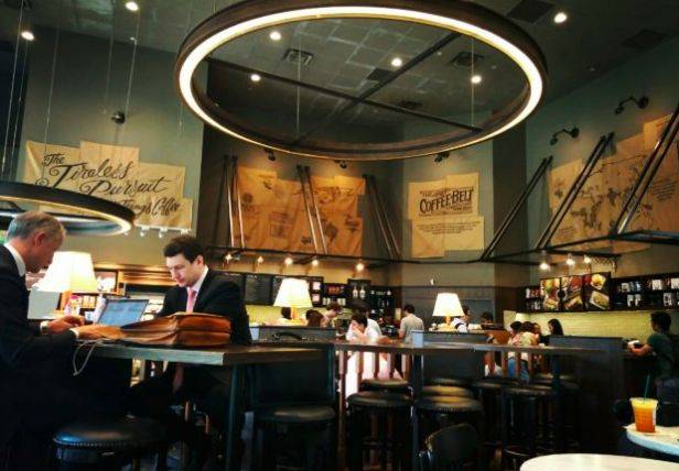 单看这家星巴克的外设计,就知道有多好看了吧!里面还有一个吧台,用来鉴赏咖啡豆以及冲泡艺术,如果你是一个懂咖啡、爱咖啡的人,不能错过哦!