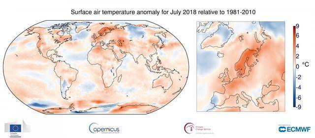 全球都很热!全球变暖继续发威,2018年7月成人类史上第三热