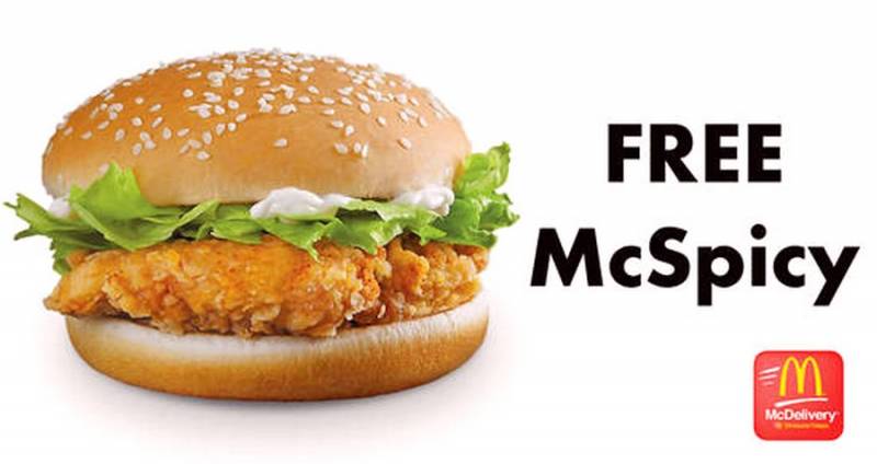 3.McDelvery最新优惠码,免费McSpicy用码可得