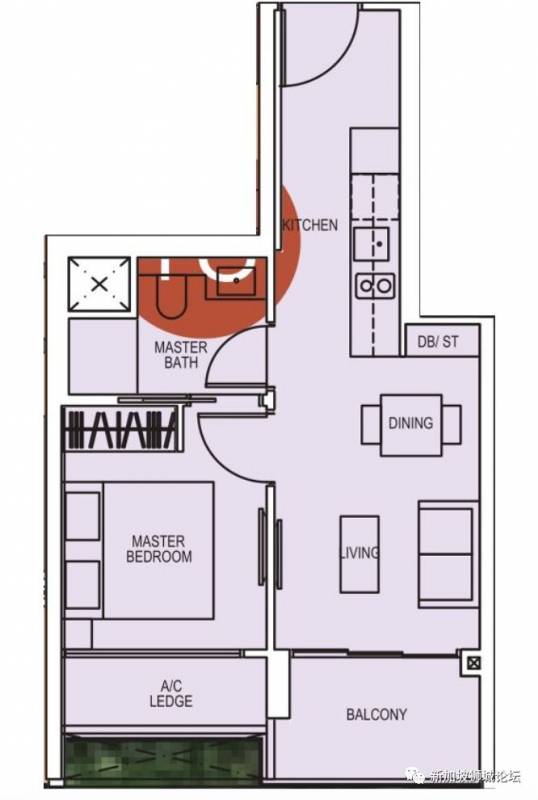 一卧房单位,室内面积43平方米/463平方尺起,价格114万新币起。