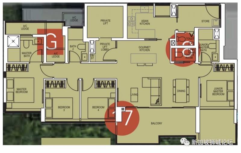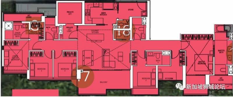 六卧房Penthouse带私人电梯单位, 室内面积207平方米/2228平方尺起,价格700万新币起。