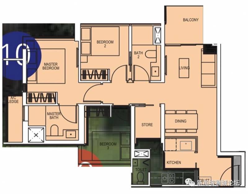 三卧房单位,室内面积85平方米/915平方尺起,价格230万新币起。