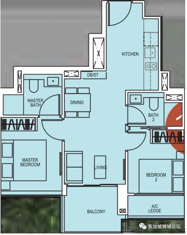 两卧房单位,室内面积58平方米/624平方尺起,价格156万新币起。
